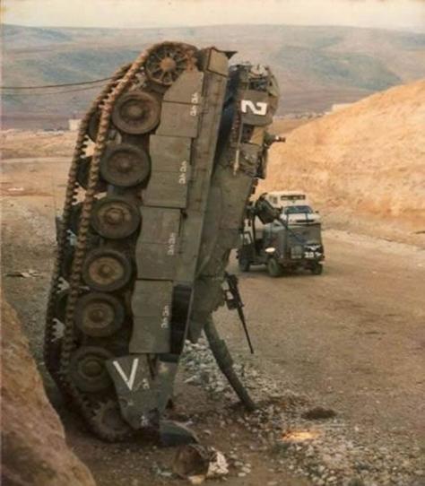Είναι λίγο δύσκολο να φανταστούμε πως το κατάφερε ο οδηγός του άρματος μάχης της φωτογραφίας. "Πάρκαρε" το άρμα ...κατακόρυφα!