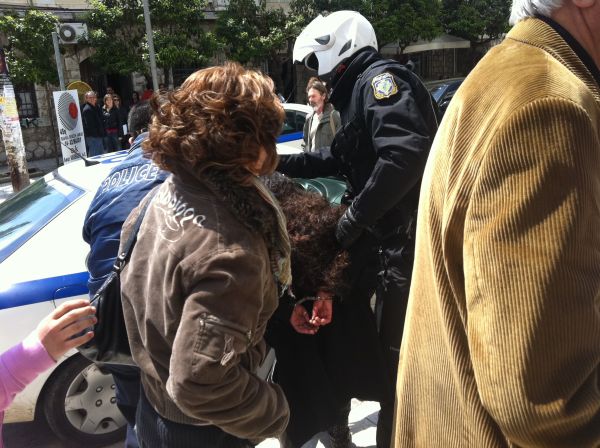 κλήθηκε η αστυνομία, που έφτασε αμέσως και, όπως βλέπετε στην πάνω φωτογραφία, της πέρασαν χειροπέδες και την οδήγησαν στην Ασφάλεια για τα περαιτέρω.