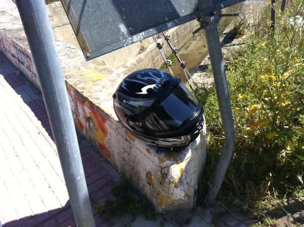Ευτυχώς ο οδηγός της μηχανής φορούσε κράνος, γιατί το παρμπρίζ του Ι.Χ. έσπασε από το κεφάλι του και έτσι ...
